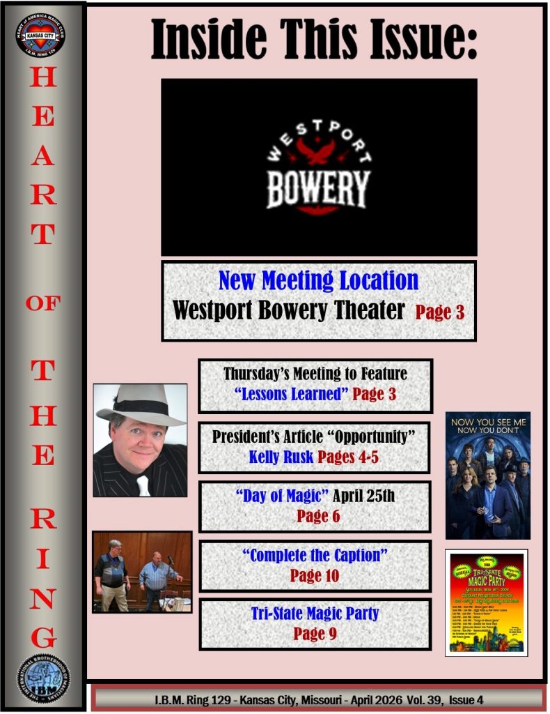 One of the great benefits of being a member of Ring 129 is our award winning newsletter, “The Heart of the Ring”. Each issue is filled with news, photos, and stories that will help keep you informed about what is magically happening in and around the metro area each month. Also included are articles from well-known guest writers in the world-wide magic community.